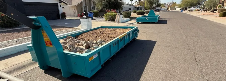 Great for small to medium concrete and dirt demolition in Glendale, AZ. Our 6.5 yard inert lowboy dumpsters are perfect for hardscape projects and demos. Our bins are low to the ground which makes loading easy. Our dumpsters fit in driveways and can be placed in locations longer dumpsters can't.